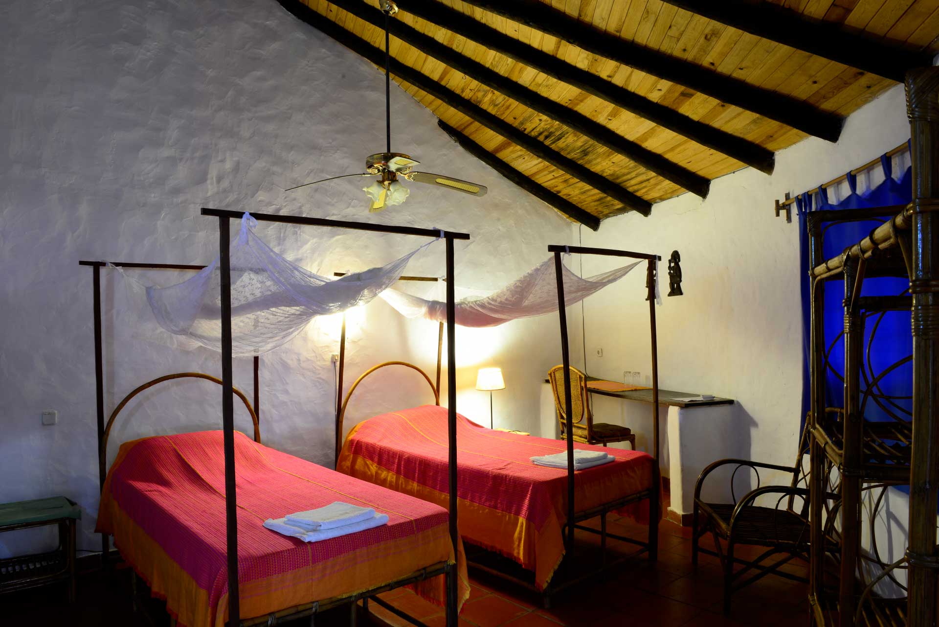 El Orango Parque Hotel está perfectamente integrado dentro de las islas del Parque Nacional de Orango y respeta el medioambiente y comunidad local. Consta de 8 bungalows de estilo africano, 6 de ellos a pie de playa y 2 rodeados de exuberante vegetación. Albergan 14 habitaciones, todas ellas dobles con baño privado de estilo colonial.